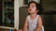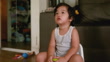 Asian baby boy sitting pooping. on the potty and watching television - 4K stock video