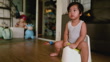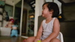 Asian baby boy sitting pooping. on the potty and watching television - 4K stock video