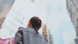 Asian businesswoman exploring the dense urban cityscape during her midday lunch break, in Hong Kong in the Greater Bay Area. Professional lifestyle, city discovery, and a refreshing pause amid a busy workday - 4K stock video