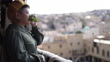 Asian Chinese female tourist smelling mint leaf avoid unpleasant smell from Chouwara Leather traditional tannery in ancient medina of Fes El Bali, Morocco, Africa. - 4K stock video