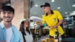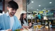 Asian tourist couple and friend tasting Brazilian typical food in the bar - 4K stock video