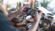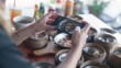 Asian Woman Taking Photos of Food on the Table with Her Mobile Phone. - 4K stock video
