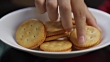 Asian young girl Hand Picking up Cracker at home - 4K stock video