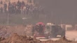 Wide shots of industrial fan being deployed on Israeli side of the border with Gaza to try to blow smoke away