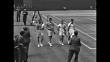 CU at net from left to right: Jack Kramer (US), Bob Falkenburg (US), Tony Mottram (UK) and William Sidwell (Australia) at Wimbledon men's doubles competition / winning shot of doubles final between Kramer, Falkenburg (far court), Mottram and Sidwell / pan to fans clapping / the 4 men walk across court, press take photos, men bow / Falkenburg and Kramer shake hands with Princess Marina, Duchess of Kent, who hands them the Wimbledon cups; both men also shake hands with Queen Mary / CU Marina and Mary in box