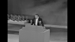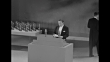 At podium Edmond OÍBrien gets envelope and announces best supporting actress Jo Van Fleet for ïEast of EdenÍ / she comes on, gets a kiss and Oscar