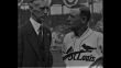 Title card: "Athletics Win Opener, St Louis -- 40,000 jam Sportsman's Park as Athletes win from Cardinals, 6-2, in first game of World Series" / overhead view of parade along city street and crowd watching it / closer view of car with giant figure of cardinal on hood driving through crowd / view from behind of band marching in parade, man carrying figure of elephant saying "These Cardinals Are Worrying Us" / overhead view of crowd in stadium standing for National Anthem / CU Connie Mack, Philadelphia Athletics owner and manager, and Gabby Street, St. Louis Cardinals manager, talking and shaking hands / Athletics pitcher Lefty Grove warms up before game