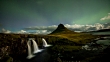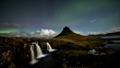 Time lapse shot of aurora borealis at Kirkjufellsfoss waterfall. Western Iceland. Also available in 8K resolution.