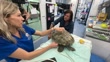 BYRON BAY, AUSTRALIA - OCTOBER 11: Australian singer and songwriter and Byron Bay wildlife hospital ambassador, Tex Perkins looks on as Dr Bree Talbot, one of the senior vets treats an injured Loggerhead sea turtle ahead of Perkins and his band "The Cruel Sea" reforming for a fundraising event, "WildAid" for urgent hospital funds to be held October 21, 2023 in Byron Bay on October 11, 2023 in Byron Bay, Australia. (Footage by James D. Morgan/Getty Images)