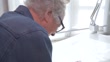Author and Illustrator Judith Kerr interview; Judith Kerr along in studio and sitting at desk / Kerr drawing / Kerr along in studio and looking at illustration