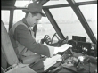 Aviator Howard Hughes sits in the cockpit of the Spruce Goose seaplane.
