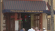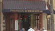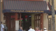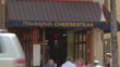 MS Awning outside Philadelphia's Cheesesteak restaurant, customers sitting outside, and passing cars / Philadelphia, Pennsylvania, United States - 4K stock video