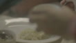 MANAMA, BAHRAIN - CIRCA 2012: Bahrain breakfast. CU tracking shot of a man placing different Bahraini traditional breakfast foods on his plate.
