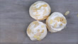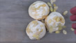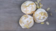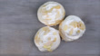 Slow-motion of adding the almond shavings. Top-down view of sweet meringue that has been baked and garnished with almond shavings