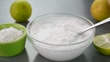 Mixing baking soda, lime and water in a glass bowl.