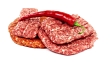 Balkan Dish, Pljeskavica and Cevapcici filmed in full HD on white background with slider