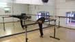 Eric Underwood rehearsing ballet moves in studio (wearing black flesh tone ballet shoes)/