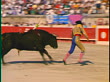 PAN banderillero thrusting two banderillas into neck of charging bull + running from bull - stock video