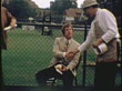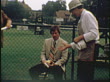 1974 MS Baseball legend Jim Bouton with teenager at the US Open Tennis Championship at Forest Hills West Side Tennis Club / Queens, New York - stock video