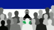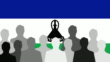 Black and white men silhouettes popping up in front of a Mosotho flag