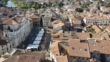 Aerial view of Piazza Libertà with fair. Bassano del Grappa, Vicenza, Italy