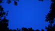 Bat flying and hunting insects in a clearing in a woodland canopy at dusk in summer on a nature reserve in Somerset, United Kingdom. The bat enters and leaves frame.