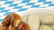 Bavarian Beer Fest, white sausage with pretzel and beer mug filmed in full HD
