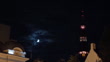 A beautiful night scene showcasing a tall tower surrounded by captivating moonlit clouds in the sky - 4K stock video