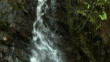 Close-up low-angle tilting shot of a clear and beautiful flow of rainforest waterfall, Sungai Ruok, Belum Rainforest, Malaysia