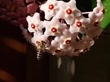 Bee gathering pollen from the Hoya Carnosa, the porcelainflower, showcasing the beauty and harmony of nature. Perfect for illustrating biodiversity and the importance of pollination in ecosystems.