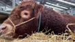 STIRLING, SCOTLAND - FEBRUARY 06: A Beef Shorthorn bull chews at Stirling Bull Sales on February 6, 2022 in Stirling, Scotland. Week one of the Stirling Bull Sales has got underway, with the judging of Aberdeen-Angus, Beef Shorthorn, Hereford and Lincoln Red breeds. Hosted by United Auctions they will welcome a grand entry of 767 pedigree bulls and females, the sales also feature eight breeds of pedigree cattle on show and sale with week one held from Sunday 6th to Monday 7th February and week two running from Sunday 20th to Tuesday 22nd February. (Footage by Jeff J Mitchell/Getty Images)