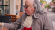 Benjamin Franklin Impersonator Eating a Philly Cheesesteak in Modern-Day Philadelphia - 4K stock video
