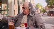 Benjamin Franklin Impersonator Sitting with Beer and Cheesesteak - 4K stock video