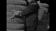 Title card: "BLOCKADE - ALLIES TIGHTEN SEA RING AROUND NAZIS" / MLS big gun on French warship in foreground, other ship in background / MS ship's turret / LS warship on patrol duty / CU French sailor looking thru binoculars / MLS US ship "American Farmer" in background, ship's gun in foreground / CU steam whistle blows / MCU three sailors look thru binoculars / MWS "American Farmer" at sea / LS-PAN high angle of dock loaded down with contraband, flanked by row of ships / LS high angle view of sailors atop boxes of cargo / MS inspector samples bale of cotton / MS burlap cover removed from side of beef marked for "Hambourg" / MS pile of tin ingots with "Hambourg" painted on them / LS-PAN high angle view of pier loaded with contraband / LS-PAN ships of British Royal Navy's Dover Patrol in English Channel / MS destroyer "H-30" / LS ocean liner with "Holland" painted on side / PAN ocean liner / MS destroyer headed towards camera / PAN British sailors manning shipboard machine guns / MS sailors looking thru binoculars / MS side of American freighter "Black Eagle" with name painted on it / MCU signal projector flashing coded message / MS contraband control officers climbs aboard "Black Eagle" from small boat below / VS inspecting and throwing mail bags over side of ship to British ship / MS American flag and "USA" on side of "Black Eagle," sailors wave from deck / MS destroyer H-30 past camera / Note: exact day not known