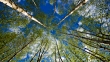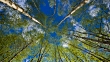 Seamless time lapse video of a forest with blue sky and clouds overhead.