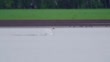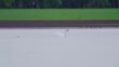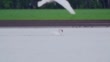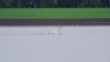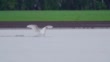 Bird - Mute Swan ( Cygnus olor ) flies over the surface of the water on a cloudy spring early morning. The swan lands on the water. Slow motion.