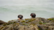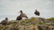Birds "Black Oystercatcher" on rocks of Pacific Ocean coast in Northern California. Ocean waves on background. - 4K stock video