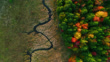 Aerial shot of Fall colors in the forest near Haines Falls, New York in autumn at sunset. Haines Falls is a small town nestled in the Catskill Mountains.