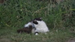 Black and White Cat Grooming on the Grass on a Sunny Spring Day - 4K stock video