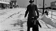 1936 black and white wide shot toddler chasing father with snowball / throwing snowball at father / Atlantic City, NJ - HD stock video