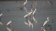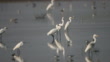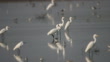 Black-faced spoonbill (Platalea minor), and many kinds of shorebirds, foraging food together on mudflat in the salt plantation at lower central of Thailand.
