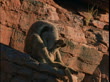 Black footed rock wallaby grooms and peers into its pouch, Ormiston Gorge, Northern Territory, Australia (Core Number: NBRY279H)