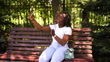 Black girl using a smartphone in the park on a walk in the summer - HD stock video