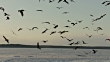 Black kites (Milvus migrans) swoop down and grab fish from pile. Japan - HD stock video