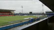 UTV Bloopers 2; General view of Linfield FC football stadium, machinery noise heard / Reporter Tracey Magee heard shouting off camera to get caretaker's attention SOT- Excuse me, hello, see that fella up there with the vaccum cleaner, you couldn't ask him to stop just for five minutes / Brilliant, thank you / (Magee begins voiceover off camera, zooms in slowly on Magee sitting in empty stadium) Piece to camera ptc about Northern Ireland football