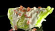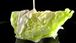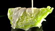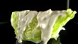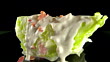 CU blue cheese salad dressing poured over iceberg lettuce wedge and bacon bits sprinkled on top - HD stock video