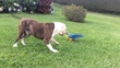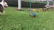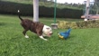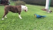 A blue parrot bullies a playful and gentle American Bulldog in this heartwarming clip. We know who the boss is!