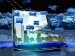 Blue tinted NTSC computer generated animation of a wireless communication concept. The clip contains 3d models of a train, a plane, a notebook, office buildings, trees and a radio antenna. It represents the global network that we are all part of.