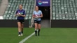 AUCKLAND, NEW ZEALAND - APRIL 16: Blues Captain, Maia Roos (L) and NSW Waratahs Women's Captain, Emily Chancellor (R) cross the pitch talking during the Women's Super Rugby Champions Final Media Opportunity at North Harbour Stadium on April 16, 2025 in Auckland, New Zealand. (Footage by Phil Walter/Getty Images)