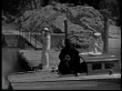 1925 MS B/W Boat arriving at castle, man wearing cape and top hat offering arm to woman - stock video